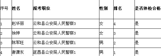 2013年浙江省麗水政法干警體檢合格名單(二)