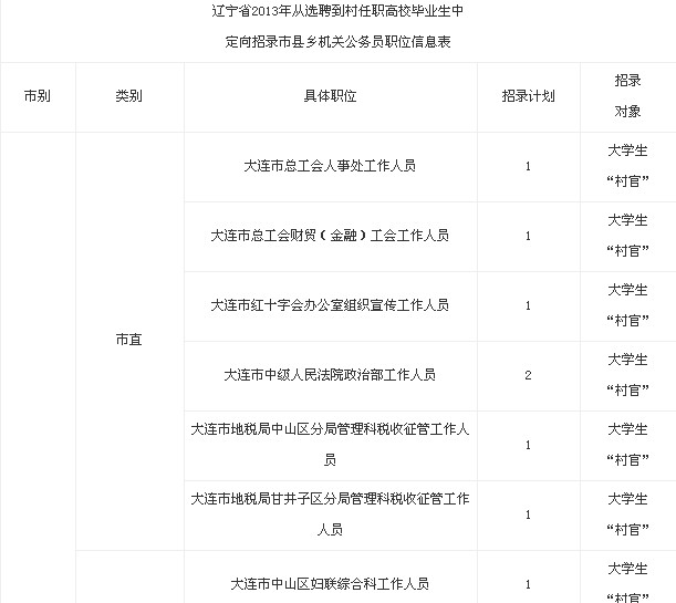 2013年遼寧省大連定向招錄市縣鄉機關公務員公告
