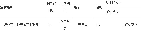 2013年福建省漳州市公務員局擬錄用名單公示(九)