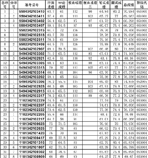 2013年安徽省蚌埠市政法干警體檢名單如下:
