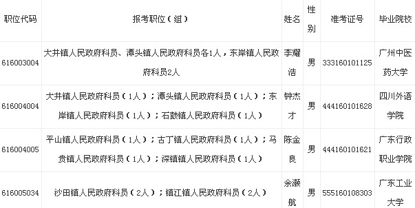 根據(jù)《中華人民共和國(guó)公務(wù)員法》、《公務(wù)員錄用規(guī)定(試行)》和《廣東省公務(wù)員錄用辦法(試行)》的精神,李耀浩等4人參加廣東省2013年錄用公務(wù)員考試,經(jīng)筆試、面試、體檢、考察合格,擬錄用為高州市鎮(zhèn)級(jí)機(jī)關(guān)公務(wù)員,現(xiàn)予公示。