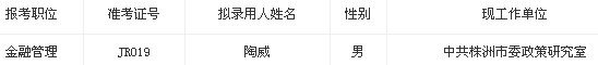 根據《湖南省人民政府金融工作辦公室2013年公開遴選優秀公務員公告》的有關要求,金融管理崗位綜合成績排第1名的徐佼同志因個人原因自動放棄,經研究決定,依次遞補綜合成績排第2名的陶威同志為金融管理職位的遴選對象,現予以公示: