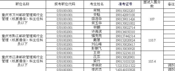 重慶市郵政管理局2014年考錄公務(wù)員面試公告