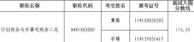 因部分考生放棄面試資格,根據(jù)公務(wù)員招考有關(guān)規(guī)定,擬在公共科目筆試合格的考生中,按照筆試成績(jī)從高到低的順序,遞補(bǔ)以下考生為面試人選: