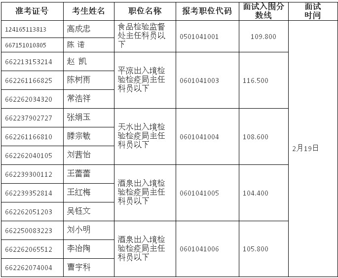 甘肅出入境檢驗檢疫局2014年度公務員錄用面試人員名單