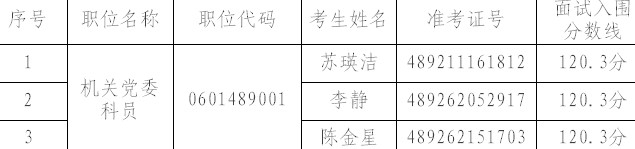 面試人員按照招錄職位考生公共科目筆試總成績從高到低的順序,按計劃招錄人數1:3的比例確定。