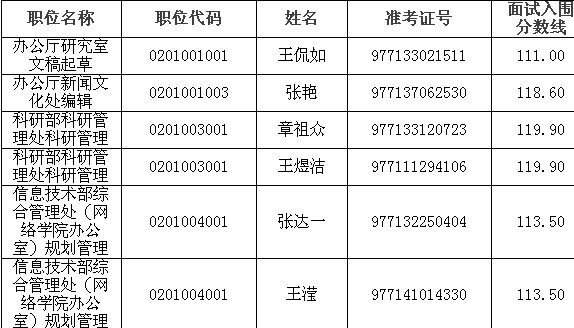因部分考生放棄面試資格,根據公務員招考有關規定,擬在公共科目筆試合格的考生中,按照筆試成績從高到低的順序,遞補以下考生為面試人選:
