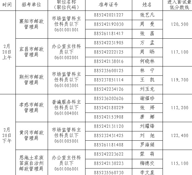 請進入面試名單的考生于2014年2月10日前確認是否參加面試。確認方式為郵件確認:發送郵件至hbyzgwy@163.com。郵件標題為“報名序號+姓名確認參加XX郵政管理局XX職位面試”。郵件內容應包括姓名、身份證號、報名序號、報考職位名稱和聯系電話。