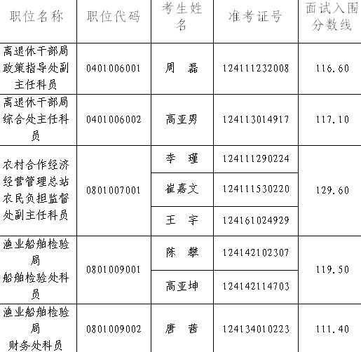 因部分考生放棄面試資格,根據(jù)公務員考錄有關(guān)規(guī)定,擬在公共科目筆試合格的考生中,按照筆試成績從高到低的順序,遞補以下考生為面試人選: