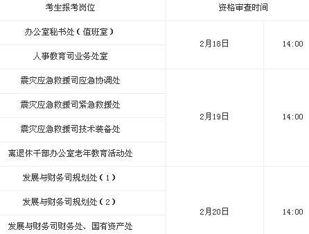 請參加面試的考生,根據報考崗位按照以下時間安排,到中國地震局機關西樓326會議室進行資格審查。