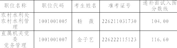 根據公務員招考有關規定,擬在公共科目筆試合格的考生中,按照筆試成績從高到低的順序,遞補以下考生為面試人員:
