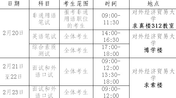 專業科目考試和面試擬于2014年2月20日(周四)至2月23日(周日)在北京舉行。具體安排如下: