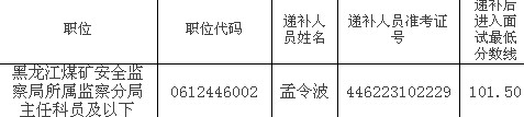 黑龍江煤礦安全監察局2014年考錄公務員遞補面試公告