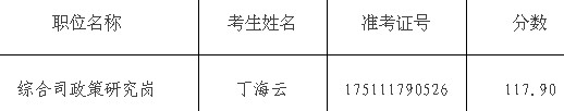 因我局綜合司政策研究崗1名面試人選放棄面試資格,根據公務員考錄有關規定,并經國家公務員局審核同意,現順次遞補該職位面試人選1名(名單附后),人選遞補后該職位面試入圍最低分數線為117.90分。