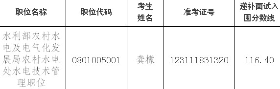 因部分考生放棄面試資格,根據公務員招考有關規定,擬在公共科目筆試合格的考生中,按照筆試成績從高到低的順序(最后兩名考生筆試總成績相同的,均遞補進入面試人員名單),遞補以下考生為面試人選: