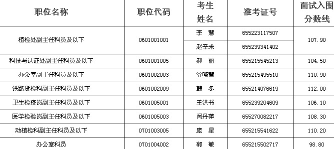 因部分考生放棄面試資格,根據公務員招考有關規定,擬在公共科目筆試合格的考生中,按照筆試成績從高到低的順序,遞補以下考生為面試人選: