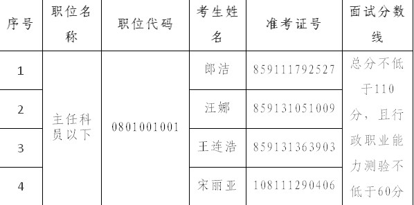 (一)參加面試人數(shù)與錄用計劃數(shù)比例達到3:1及以上的,面試后按綜合成績從高到低的順序確定考察和體檢人選;比例低于3:1的,考生面試成績應(yīng)達到其所在面試考官組使用同一面試題本面試的所有人員的平均分,方可進入考察和體檢。綜合成績計算: 綜合成績(無專業(yè)科目考試) =(筆試總成績÷2)×50% + 面試成績×50%。