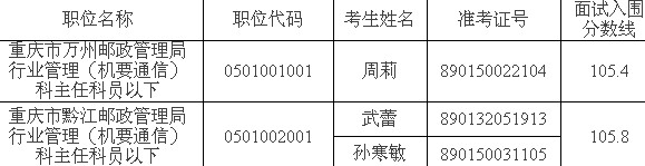 以上考生按照《重慶市郵政管理局2014年度考試錄用公務員面試公告》的要求,盡快準備有關材料,在2月14日之前遞交相關材料,并按要求參加資格復審和面試。