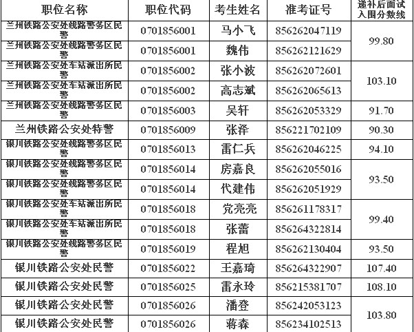 2014年蘭州鐵路公安局考錄公務(wù)員遞補面試公告