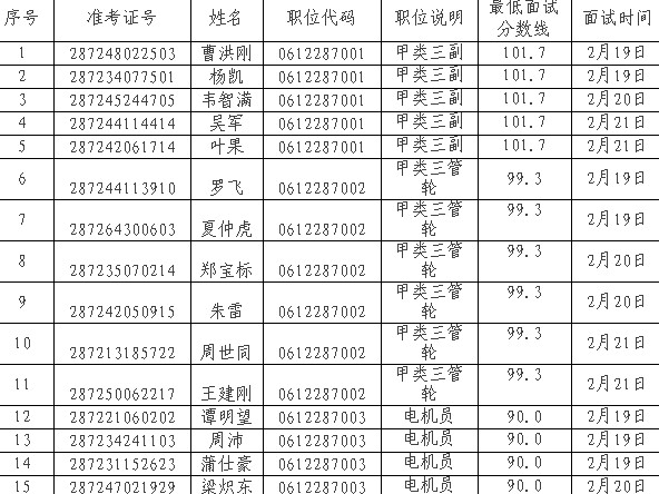 因部分考生放棄面試資格,根據公務員考錄工作有關規定,從國家公務員局提供的遞補考生名單中按照筆試成績從高到低順序,遞補以下考生進入面試: