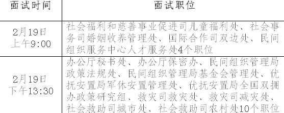 面試時間為2014年2月19日(星期三),按不同職位分別進行。面試方式為結構化面試。