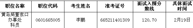 因考生放棄面試資格,根據(jù)公務員招考有關規(guī)定,在公共科目筆試合格的考生中,按照筆試成績從高到低的順序,遞補以下考生為面試人選: