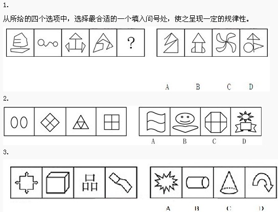 解析:每一幅圖形中所有的小圖形的面積、形狀均相同,故正確答案為A。