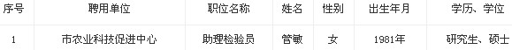 深圳市農業科技促進中心擬聘用職員人選公示名冊