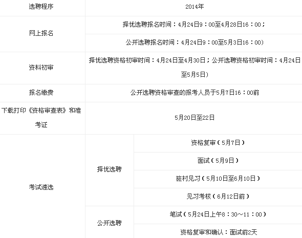 從上述選聘條件可以看出:2013年公開選聘的條件中要求:全日制普通高校專科以上學歷的畢業生即可,2014年提高到了本科以上學歷,提高學歷和擇優選聘的人數增加都意味著大學生村官越來越要求高學歷、高素質的人員。