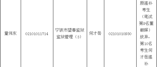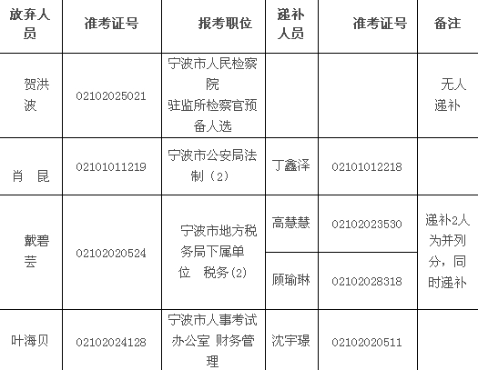 2014年浙江省寧波市公務員放棄資格復審及遞補名單公告
