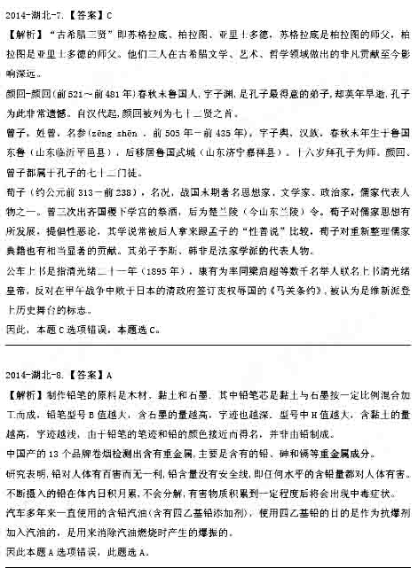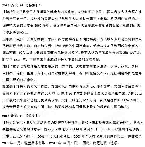 2014年湖北省公務(wù)員考試行測真題解析:常識判斷