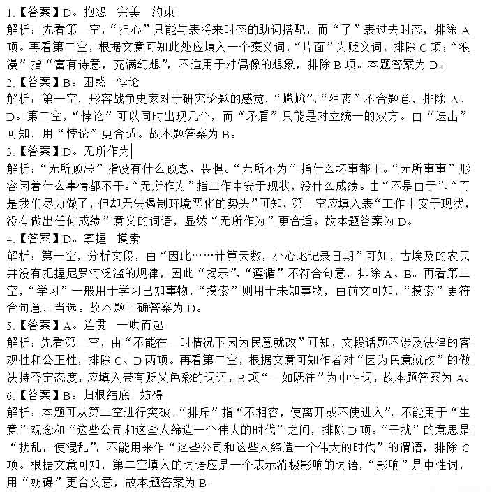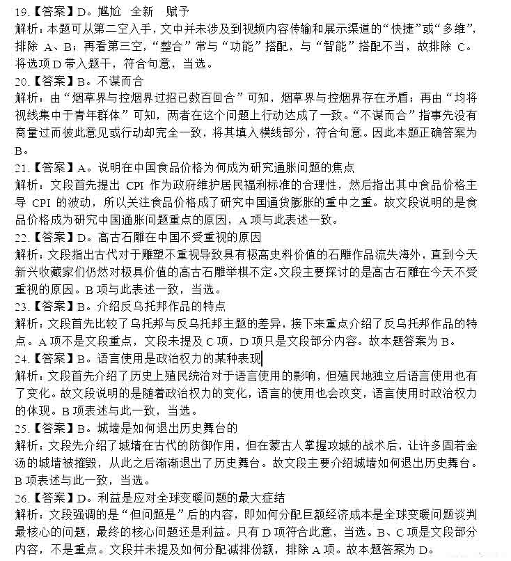 2014年遼寧省公務(wù)員考試行測(cè)答案:言語(yǔ)理解