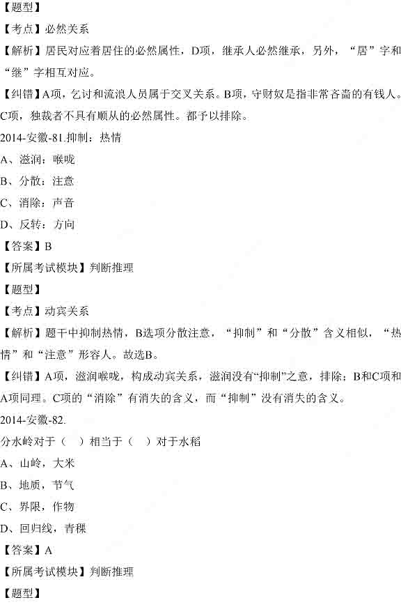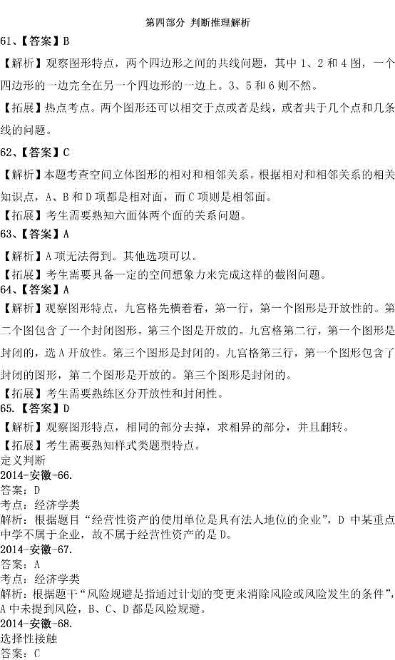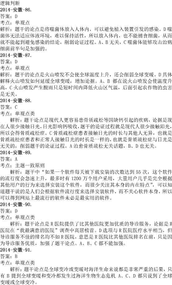 2014年安徽省公務(wù)員考試行測答案:判斷推理