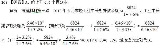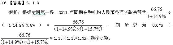 108.【答案】B。房產開發貸款余額 地產開發貸款余額 輕工業中長期貸款余額