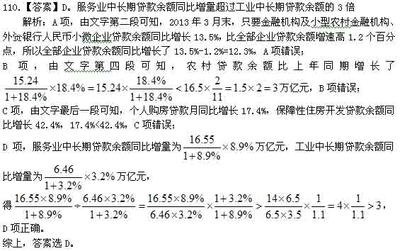 C項,服務業中長期貸款余額16.55萬億元,農戶貸款余額為3.86萬億元,重工業中長期貸款余額5.77萬億元,錯誤;