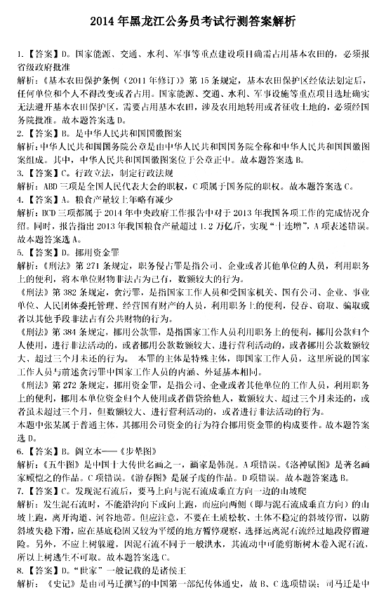 2014年黑龍江省公務(wù)員考試行測答案:常識判斷