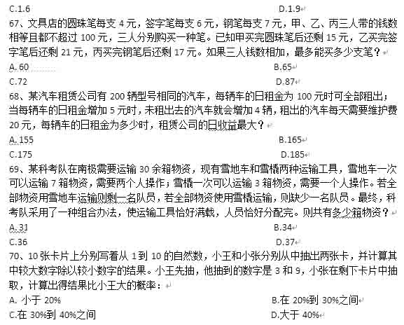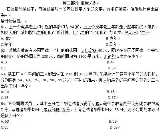 2014年下半年重慶公務員考試行測真題:數量關系