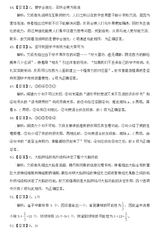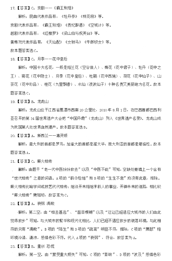 2014年下半年四川省公務員考試行測真題答案:言語理解