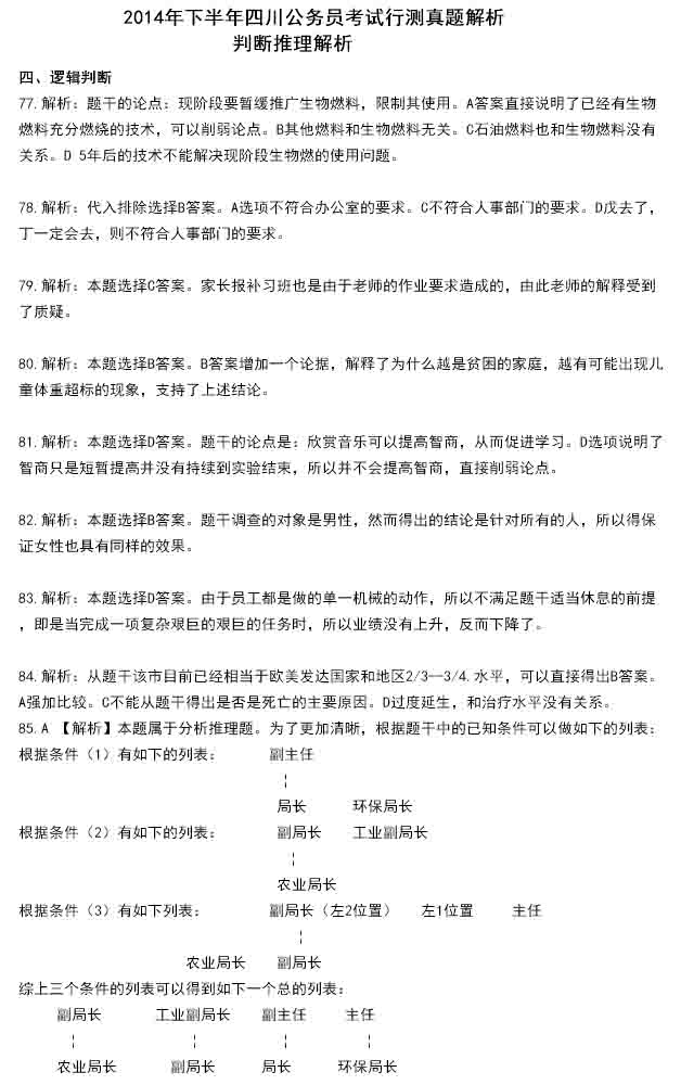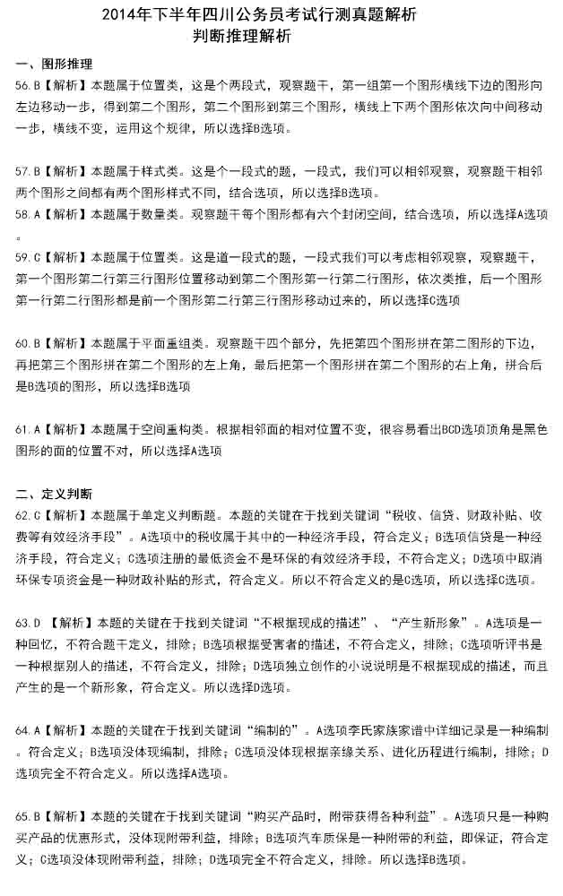 2014年下半年四川省公務員考試行測真題答案:判斷推理