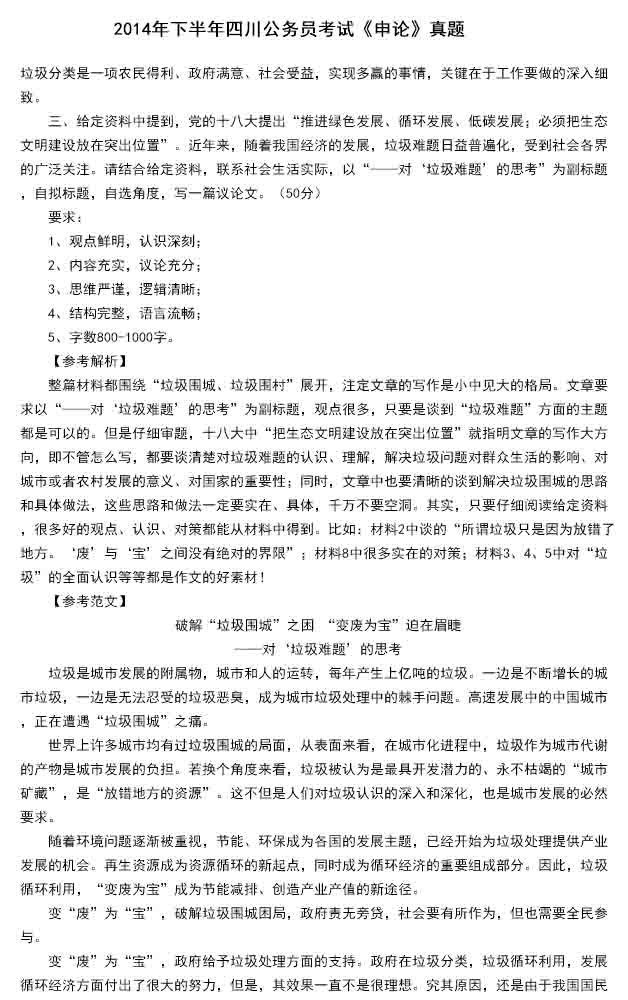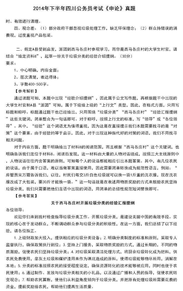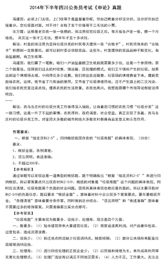 2014年四川省公務員考試申論真題答案