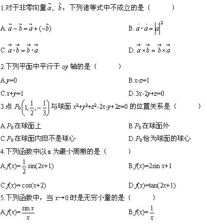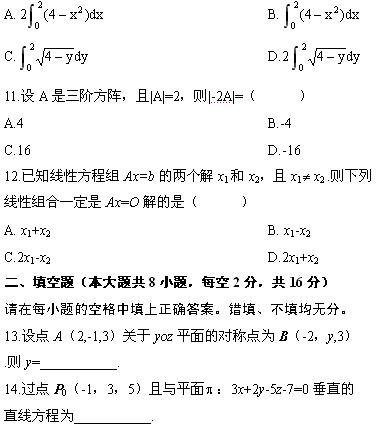 在每小題列出的四個備選項中只有一個是符合題目要求的,請將其代碼填寫在題后的括號內。錯選、多選或未選均無分。