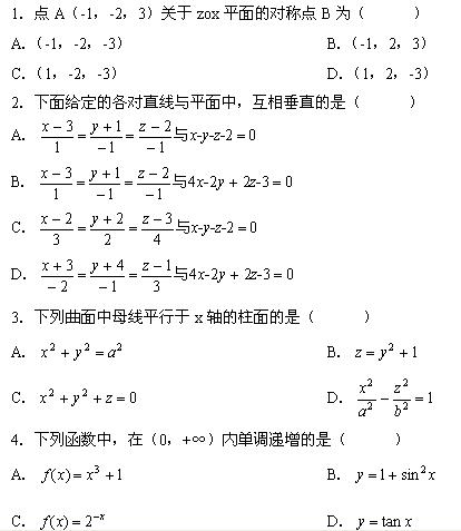 在每小題列出的四個備選項中只有一個是符合題目要求的,請將其代碼填寫在題后的括號內。錯選、多選或未選均無分。