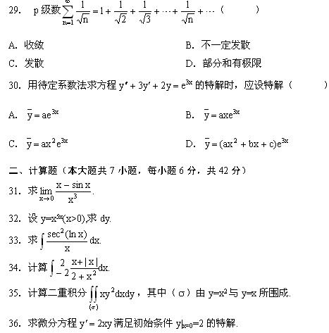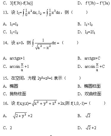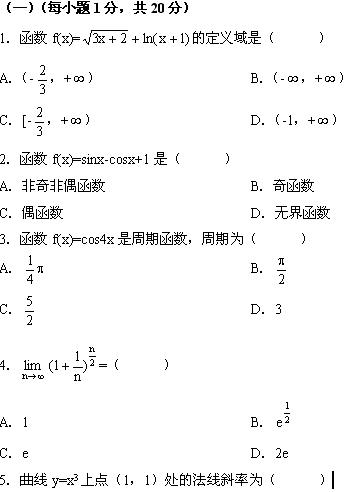 2007年1月高教自學考試高等數(shù)學(工專)試題