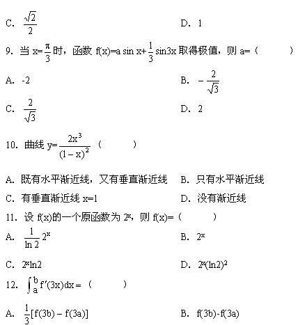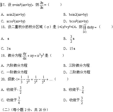 在每小題列出的四個備選項中只有一個是符合題目要求的,請將其代碼填寫在題后的括號內。錯選、多選或未選均無分。
