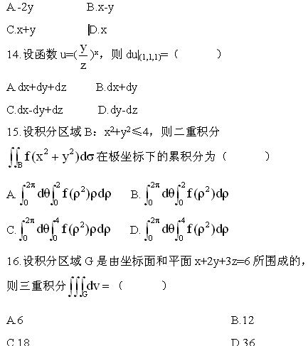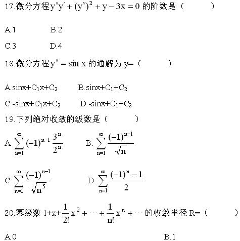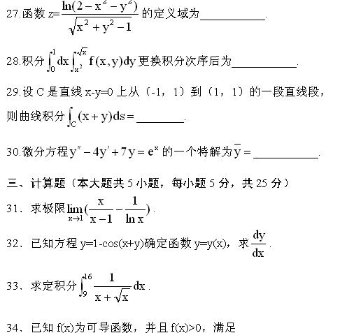 2007年1月高教自學(xué)考試高等數(shù)學(xué)(工本)試題