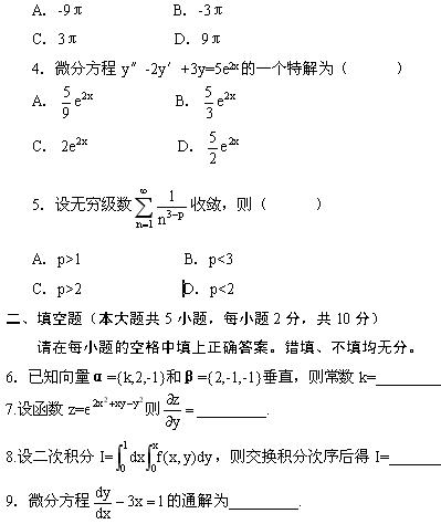 在每小題列出的四個備選項中只有一個是符合題目要求的,請將其代碼填寫在題后的括號內。錯選、多選或未選均無分。