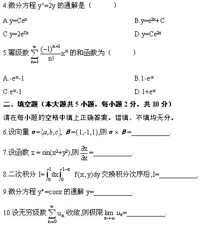 2008年1月高教自學(xué)考試高等數(shù)學(xué)(工本)試題