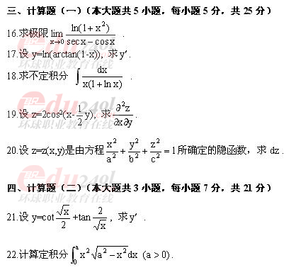 當前位置: 首頁 > 自學考試 > 自學考試歷年試題 > 全國2008年7月高教自考高等數學(一)試題