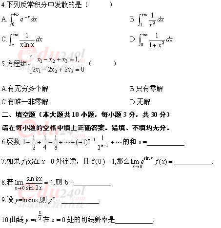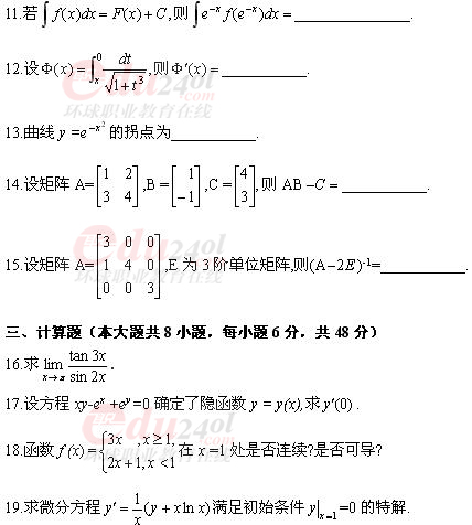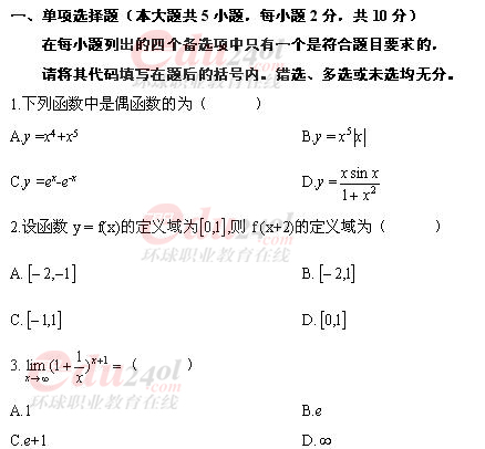 全國2008年1月高教自學(xué)考試高數(shù)(工專)試題