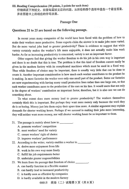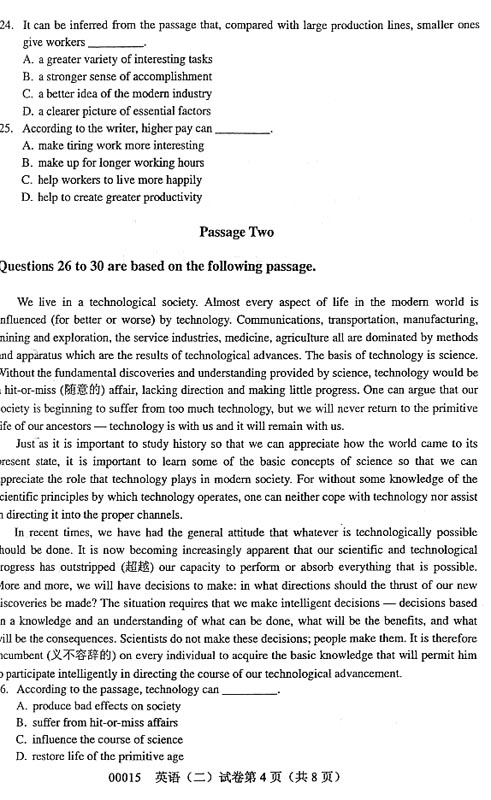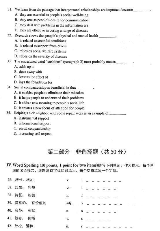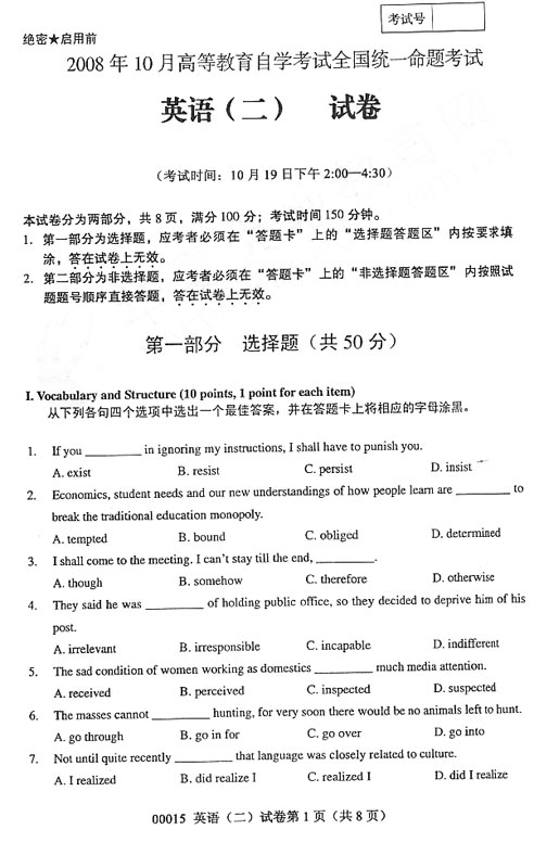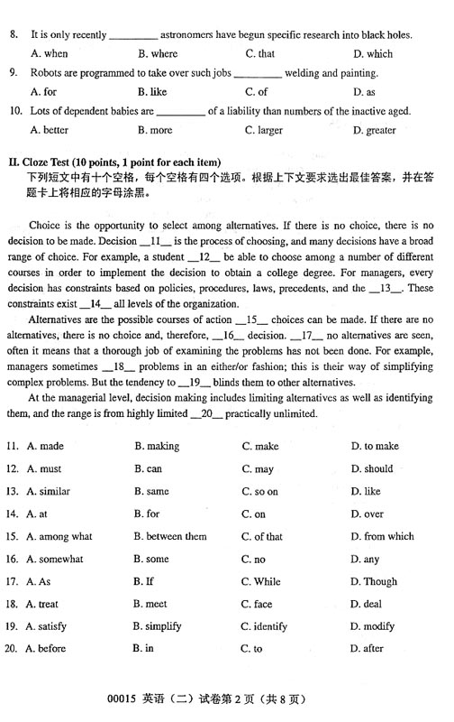 - 2025年10月自考《英語二》選擇、完形填空、寫作真題及答案更新!2025-10-28